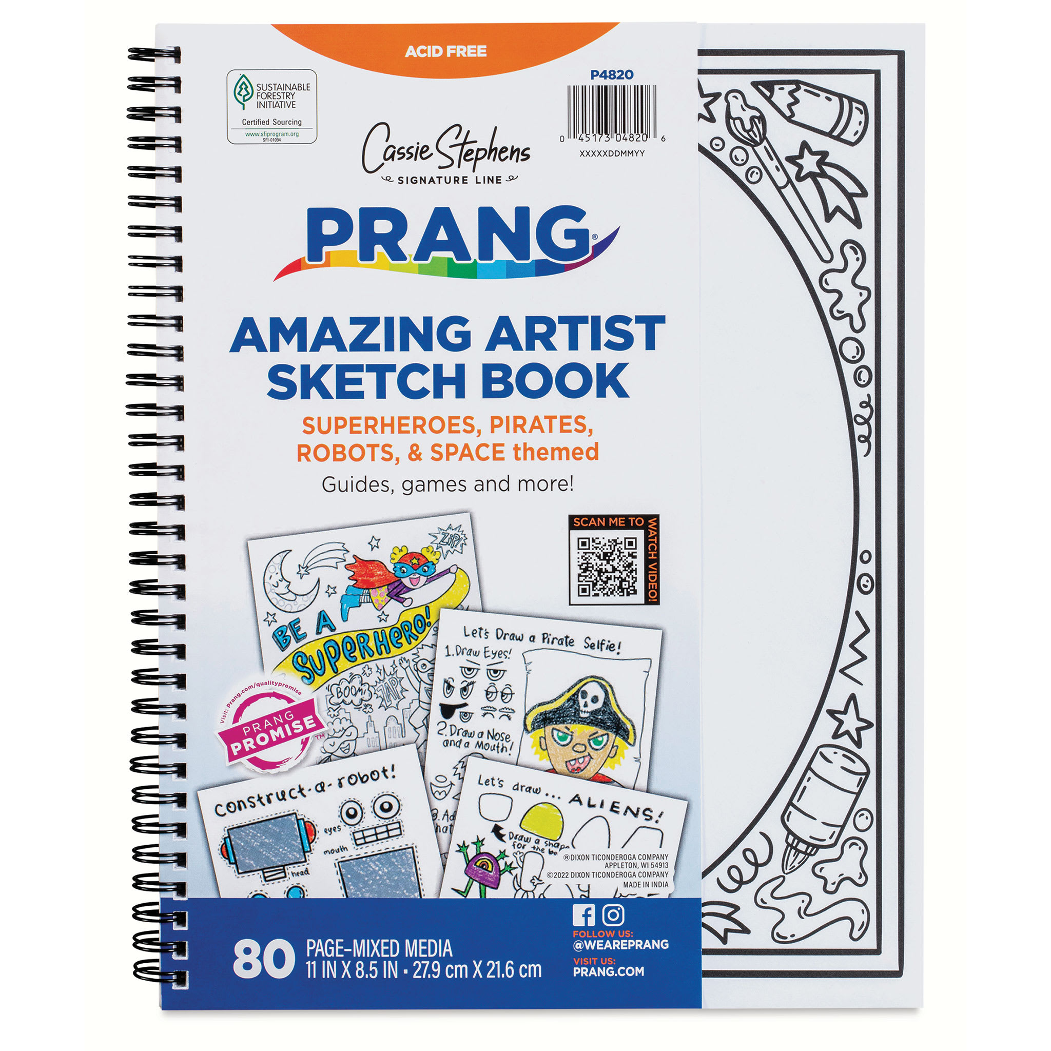 Designed by “America’s Art Teacher” Cassie Stephens, the Prang Amazing Artist Sketch Book gives kids the skills and confidence they need to create their own masterpieces. Featuring four kid-friendly themes, including space, robots, pirates, and superheroes, this spiral-bound sketchbook is filled wit...