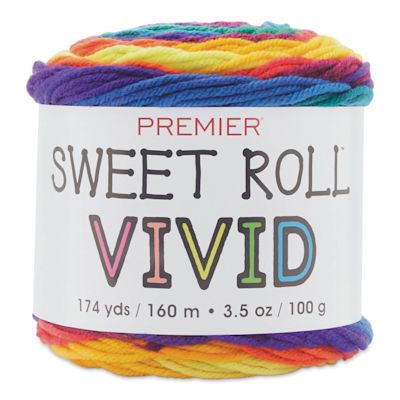 With Premier Yarn Sweet Roll Vivid Yarn, your knit and crochet projects are sure to pop. This #4 medium weight, 100% acrylic yarn comes in bright colors and creates a self-striping effect as you work, making it great for scarves, hats, blankets, sweaters, and more. It’s also Standard 100 certified b...