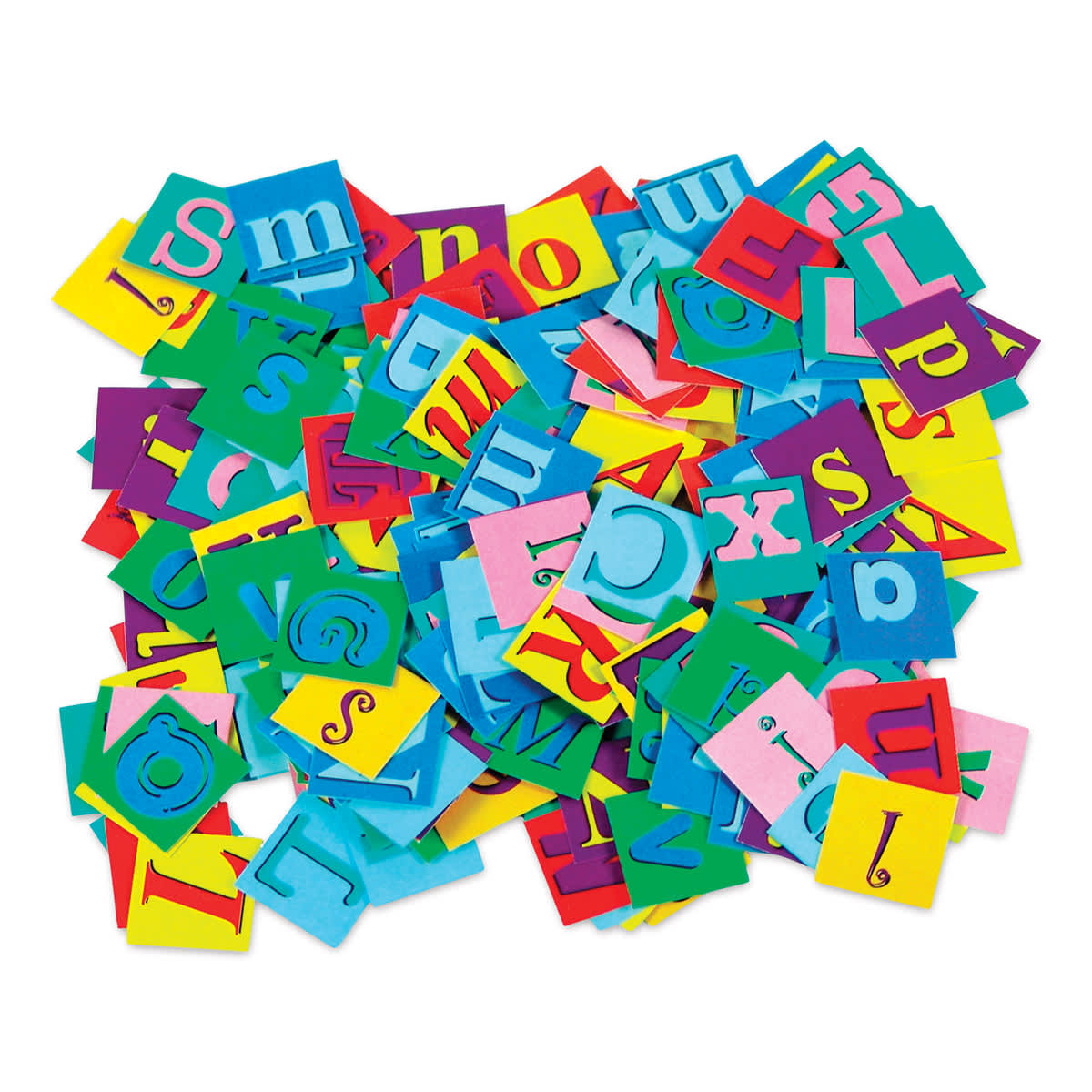 Use Roylco Alphabet Pasting Pieces to add special words, fun phrases, and letters to a variety of art and craft projects. These brightly colored, double-sided pieces are also great for preschool language activities.
