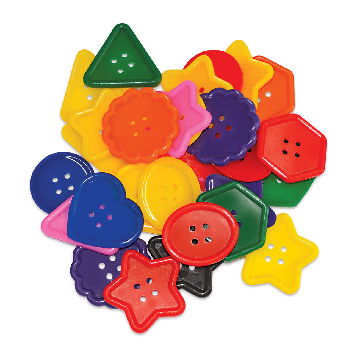 Roylco Really Big Buttons are perfect for little hands! They’re great for stringing and preschool art projects. This package includes 60, 2" x 2" buttons in bright colors and eight basic shapes.