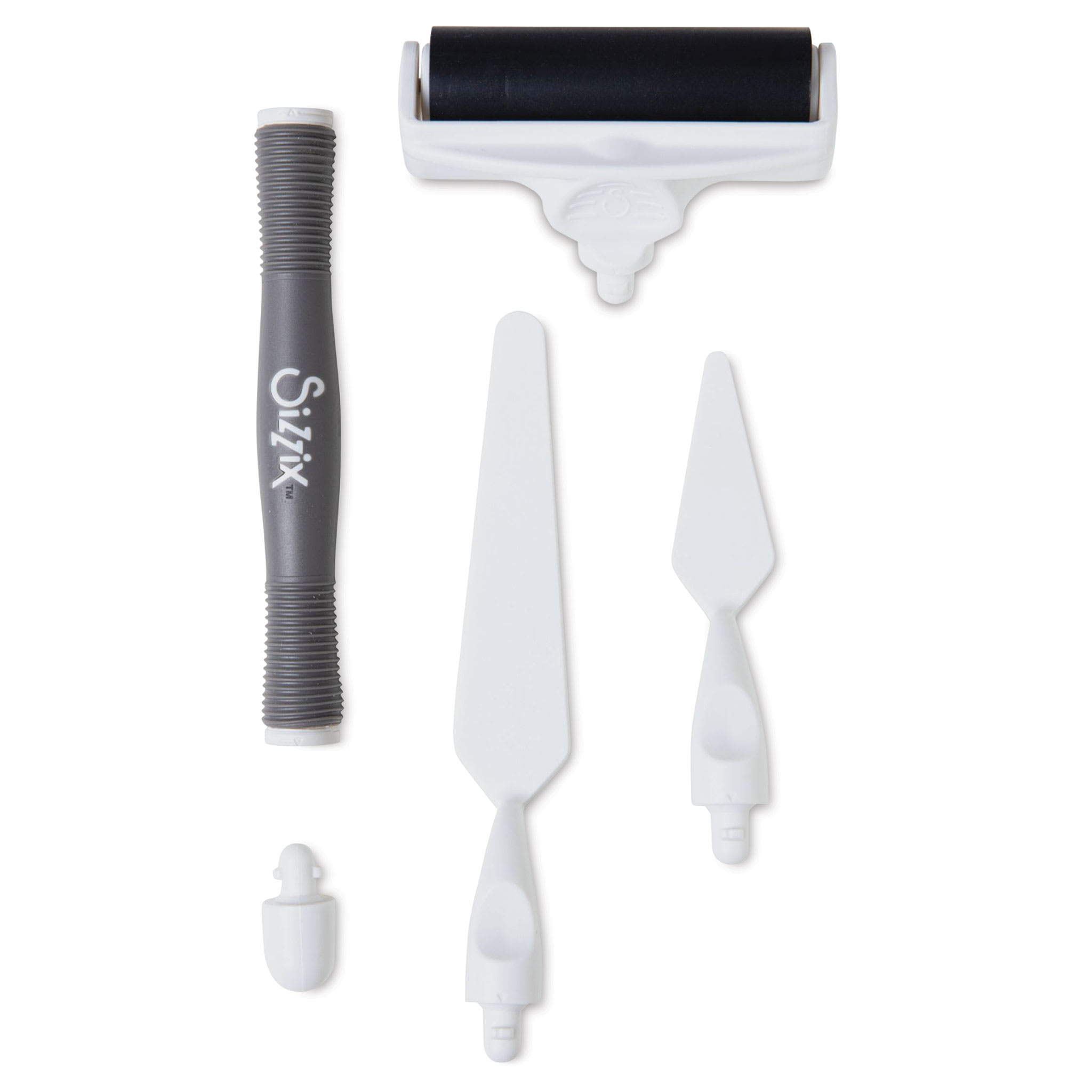 Complete multimedia projects and work with a variety of mediums with the Sizzix Making Tool Effectz Set. This set features a dual-ended handle that allows you to use the included brayer and palette knives at the same time. Apply paint with the brayer or work with heavier mediums like pastes or wax w...