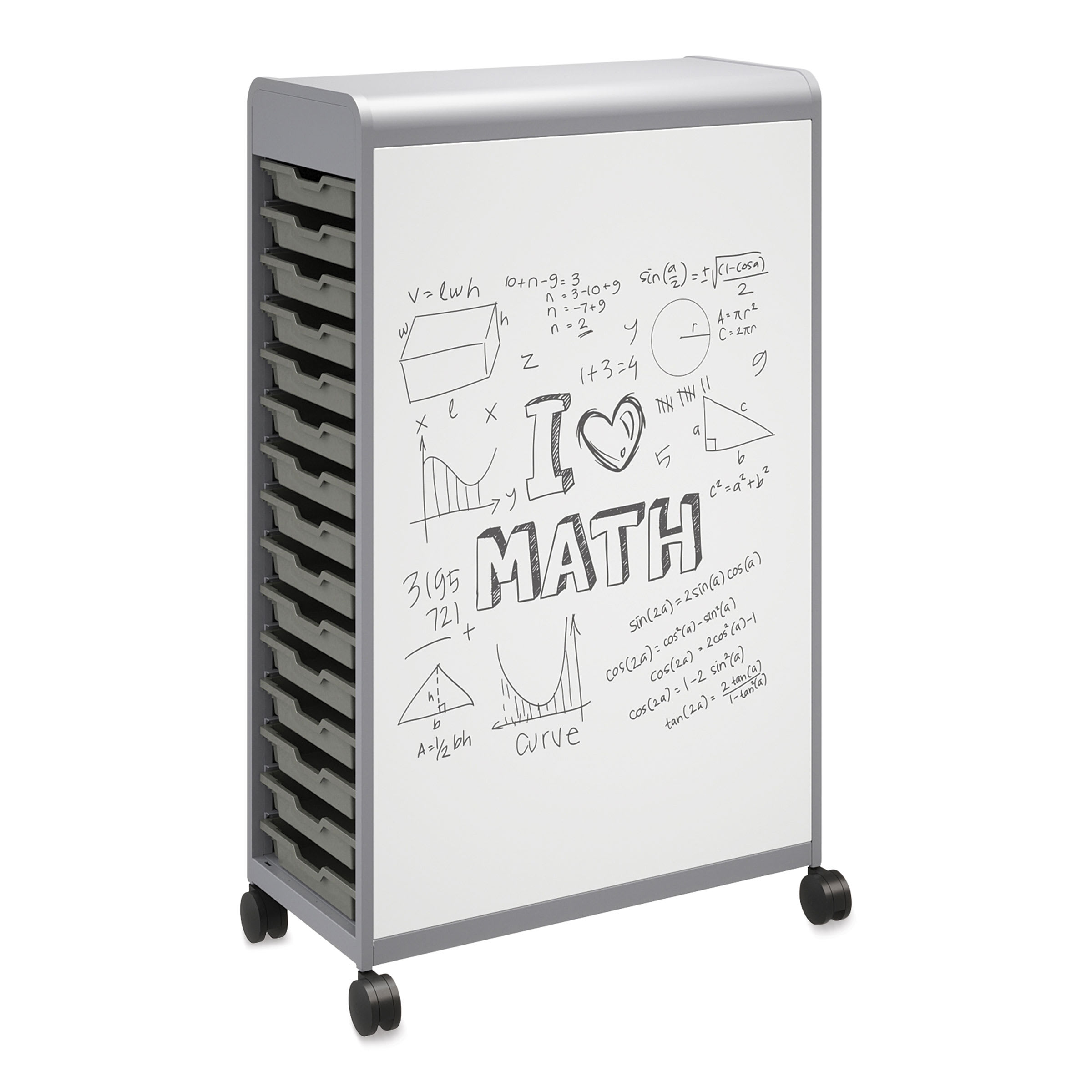Organize, store, and distribute learning materials with ease with the Smith System Cascade Two-Sided Whiteboard. It replaces the traditional single-purpose whiteboard with a dual-purpose mobile whiteboard plus storage.