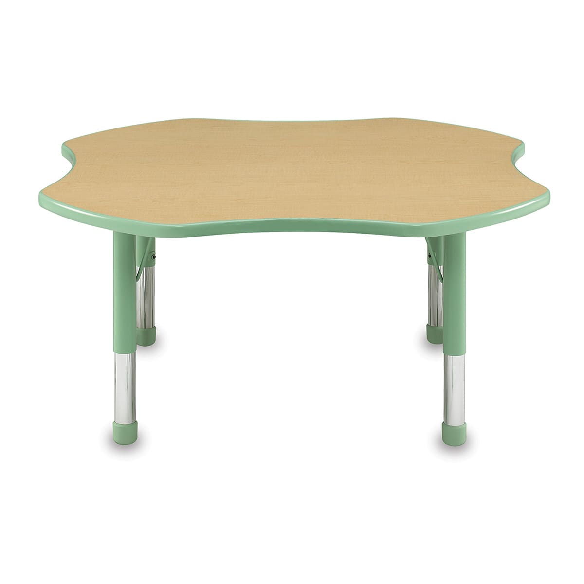 Clover Husky Activity Tables are height-adjustable and ideal for any learning environment, from pre-K to high school. They feature a durable, 1-1/4" (3 cm) thick laminated work surface with a 3/8" (1 cm) thick bumper edge stapled in place every eight inches. The table su...