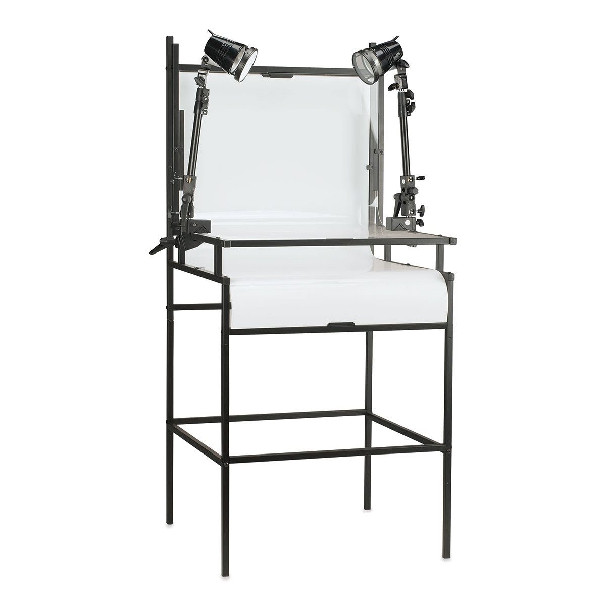 Raise your close-up and still-life photography to a whole new level with the Smith-Victor Digital Desktop Studio Kit with Lights. This sturdy little studio is a complete tabletop imaging solution and comes with 24" wide clear and white plexiglass panels. The two 250W EYH quartz, dimmable 3050K lamps...