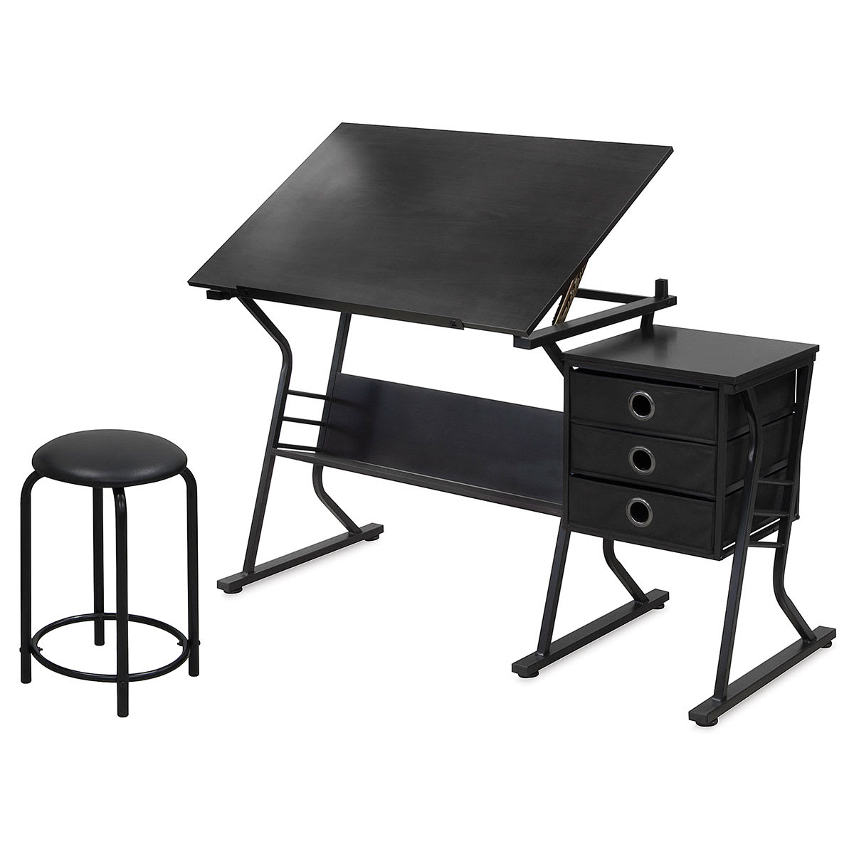 The Studio Designs Eclipse Table and Stool Set is the perfect work station for tight spaces — and tight budgets! The table features a 35-1/2" × 23-1/2" hard laminate top that tilts to any angle from 0-40°. A pencil ledge holds writing and drawing instruments right at your fingertips, while a lower s...