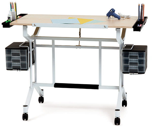 The Pro Craft Station by Studio Designs is the ideal table for hobbyists and crafters. It features a generous 38"W × 24"D (97 cm × 61 cm) maple work surface with a clean, white finish and slide-up pencil ledge. Simply adjust the angle of the tabletop up to...