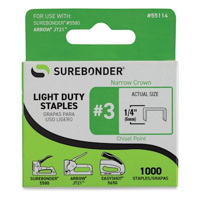 Surebonder Light Duty #3 Staples are designed for use with the Surebonder Easy Tacker Staple Gun, and other staple guns.