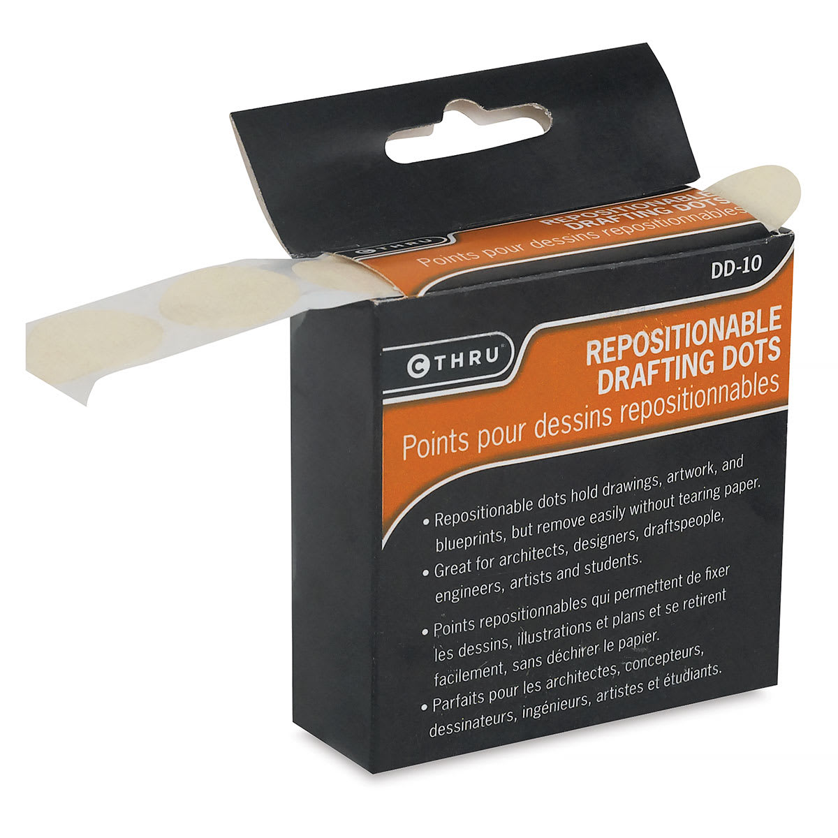 Westcott/C-Thru Drafting Dots hold drawings, artwork and blue prints, but remove easily without tearing paper. The pull-tab dispenser box contains 500, 7/8" (2.2 cm) diameter dots. Note — Formerly known as C-Thru, the products you receive may be labeled with either the West...
