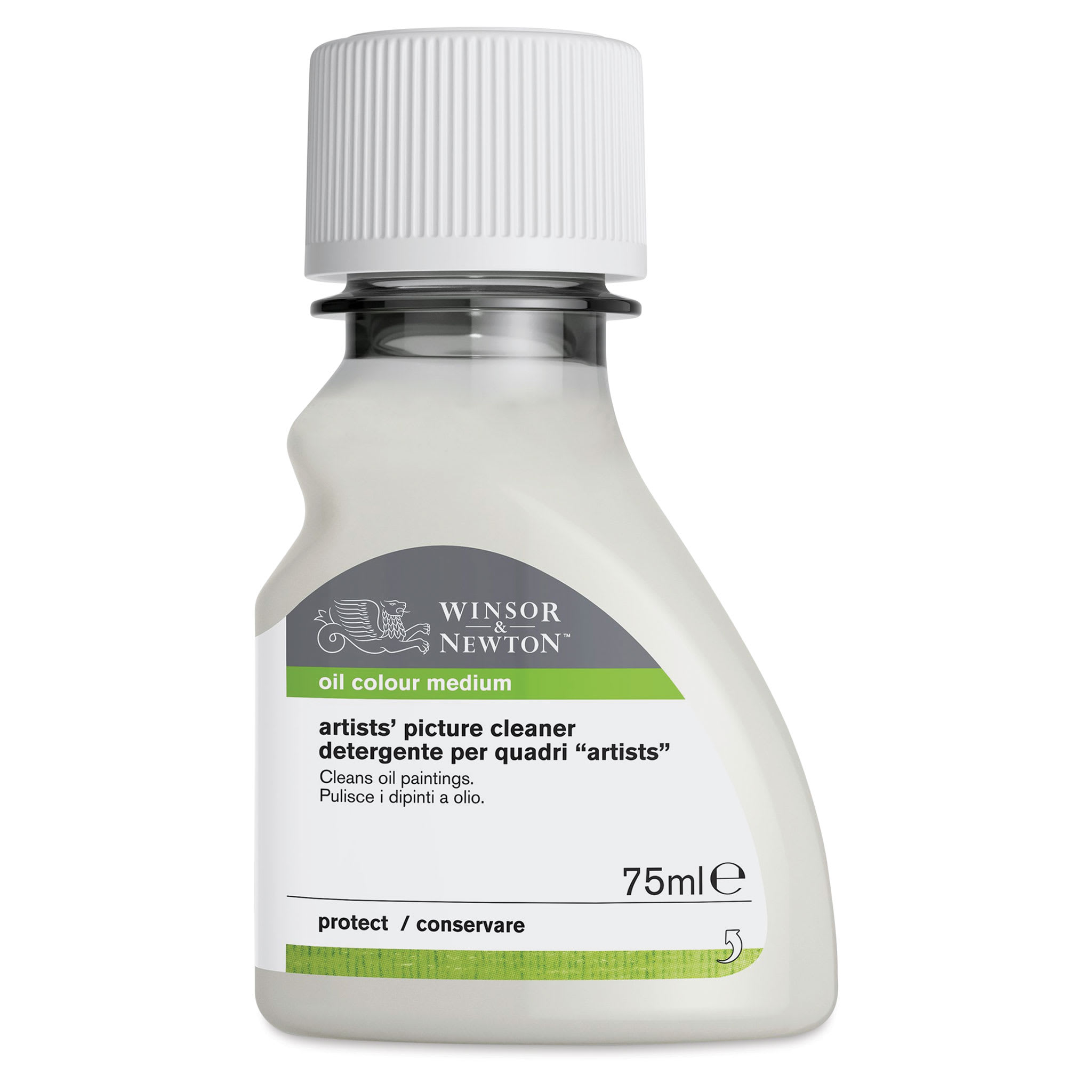 Winsor & Newton Artist's Picture Cleaner is a liquid which dissolves linseed oil oxidation and cleans soiled oil paintings. It containes an emulsified mixture of Copaiba balsam, dipentene, and pine oil with ammonia. The liquid settles out in two layers. Thinning is not recommended. Follow directions...