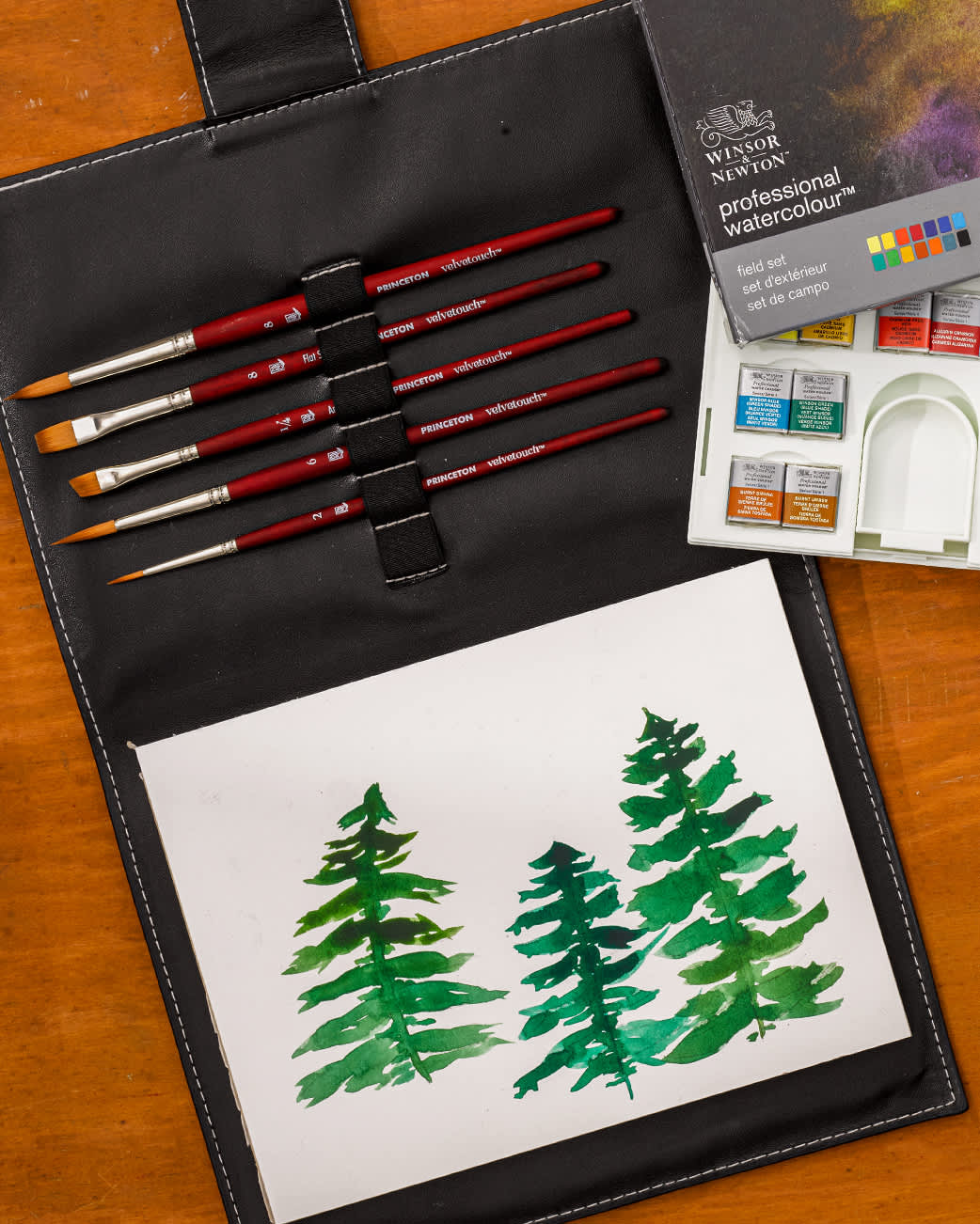 2. Wet the paints in the compact watercolor set using a dropper or spray bottle.
